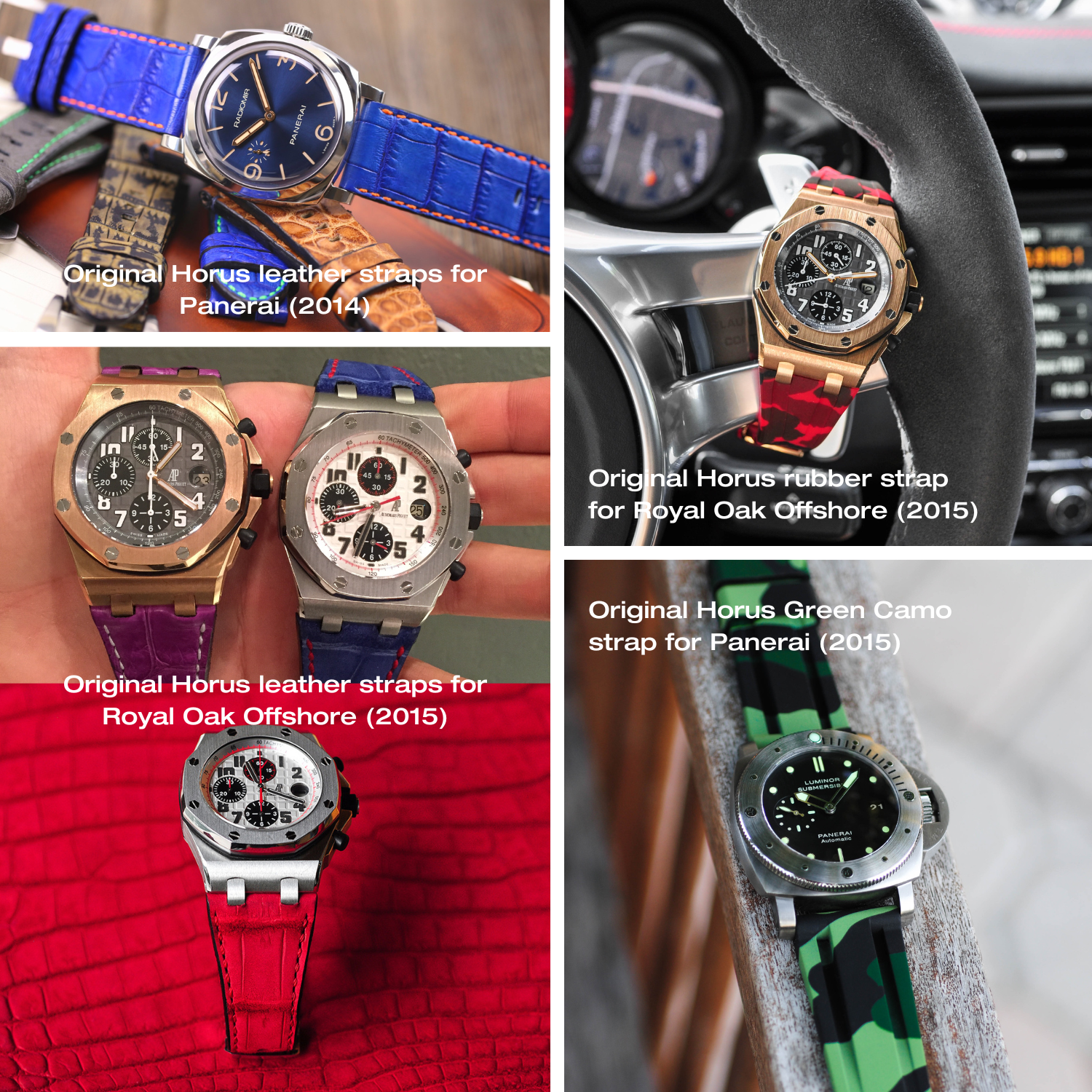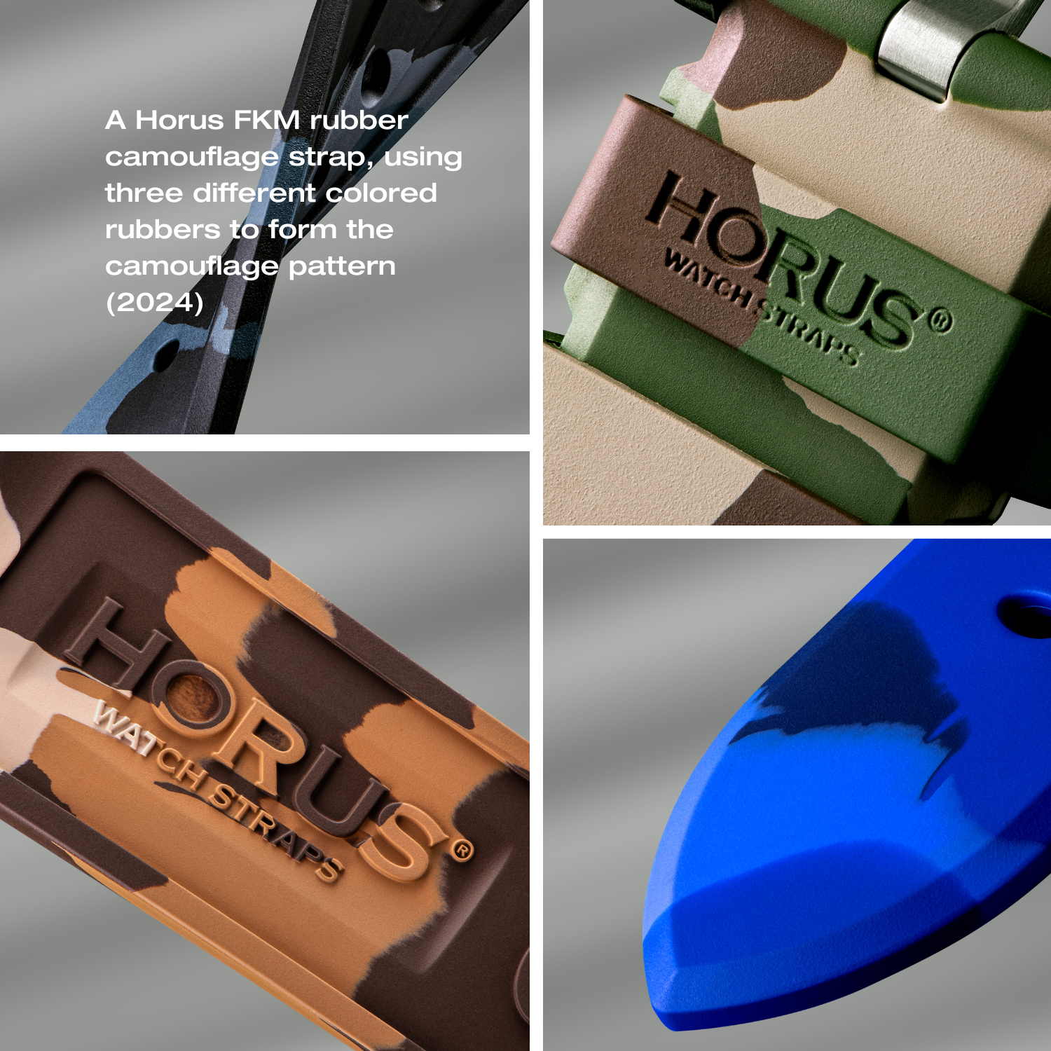 Some time after, capitalizing on a resurgence of camouflage patterns in the world of fashion, Horus released its camouflage rubber straps - originally in 24mm universal fitment and 42mm Audemars Piguet Royal Oak Offshore fitment only, and only in red and green.